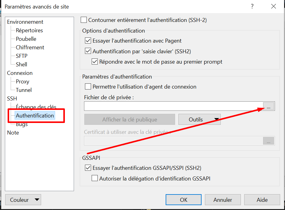Vous devrez ensuite configurer votre client SFTP (FileZilla, WinSCP...) pour qu'il se connecte à l'aide de la clé privée.